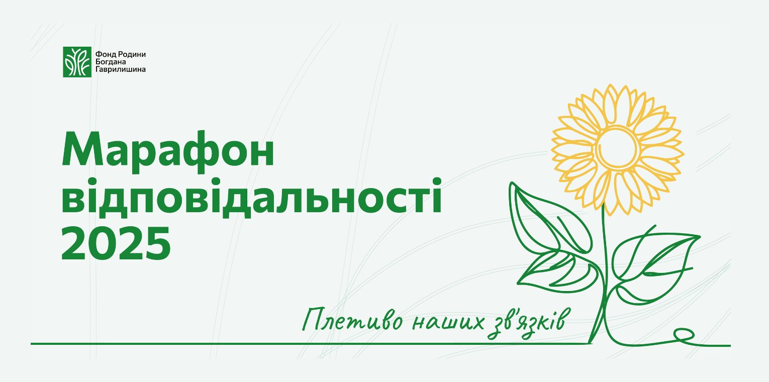 Марафон відповідальності — традиція Фонду родини Богдана Гаврилишина, яка з року в рік надихає на глибинне осмислення власних цінностей. У цьому процесі нам допомагає Декларація відповідальності людини Богдана Гаврилишина. Ми знайомимося з її принципами та садимо насіння соняха — як символ особистісного зростання та усвідомлення персональної відповідальності за майбутнє. У 2025 році відбувається дев’ятий Марафон відповідальності.